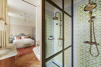 La propriété de 83 chambres et huit suites mélange l’architecture Renaissance et baroque avec des intérieurs art déco et industriels.
