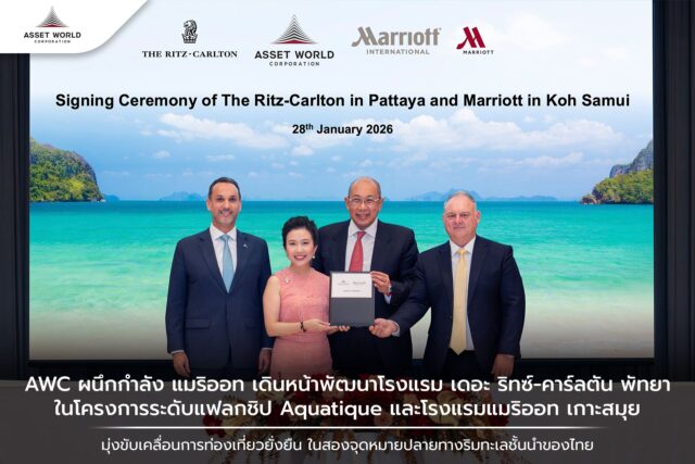 AWC, leader thaïlandais de l’immobilier intégré, poursuit son développement dans le secteur hôtelier de luxe avec Marriott International. Le projet The Ritz-Carlton Pattaya, intégré au complexe Aquatique, constitue le premier hôtel Ritz-Carlton à Pattaya et servira de destination phare pour les voyageurs domestiques et internationaux. L’établissement comprendra 224 chambres sur un terrain en front de mer et bénéficiera d’un plan d’ensemble combinant hôtellerie, retail et attractions expérientielles.