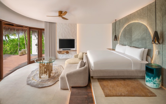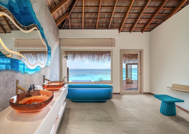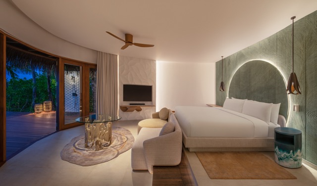 Inspiré par la faune marine et la flore luxuriante, le Miaja Design Group a réinventé les 77 villas du complexe. Les villas sur pilotis empruntent leurs motifs aux majestueux requins-baleines, tandis que les villas de plage s’inspirent des textures complexes des mangroves. Les nouvelles villas Supreme et Oasis sur pilotis, dotées de piscines privées et de toboggans aquatiques exaltants, ajoutent une touche ludique à ce refuge de luxe.