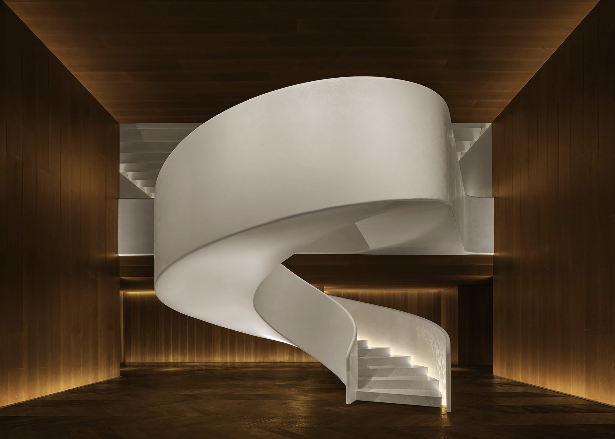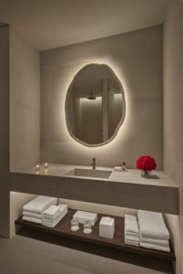 La participation de François Champsaur au projet étonne. « J’ai envoyé mon book à Ian Schrager sur recommandation et, au bout de plusieurs mois, il m’a rappelé. Il me voulait sur le projet » nous confie le Français. Engagé pour travailler main dans la main avec l’architecte d’intérieur, John Pawson, il avoue avoir beaucoup appris aux côtés du maître du minimalisme à l’anglaise, notamment à se concentrer uniquement sur le design produit. « Malgré l’ampleur du projet et les complications que peut amener la présence d’un grand groupe à sa tête, nous avons été totalement libre de proposer notre vision des choses. En partie grâce à Ian Schrager qui comprend l’importance du design au détriment de son coût » ajoute-t-il. Ainsi, deux sublimes suspensions en marbre massif viennent, par exemple, coiffer la salle du restaurant Jerónimo — une folie géniale qui n’aurait pas été possible sans l’appui du grand patron.