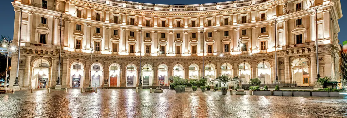 Le bâtiment est suspendu au-dessus des anciens thermes de Dioclétien, dont les fondations, les piscines et les mosaïques ont été excavées. peut être vu à travers le rez-de-chaussée inférieur. L’hôtel abrite également l’un des plus grands toits-terrasses de la ville, offrant une vue imprenable sur l’horizon.