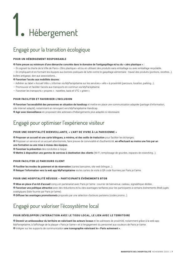 - Des supports de communication « Paris Je t’aime » valorisant l’engagement des signataires auprès du public et témoignant de leur adhésion au Manifeste sont édités. Les professionnels sont mis en avant dans les contenus digitaux « Paris je t’aime » selon leur secteur d’activité.