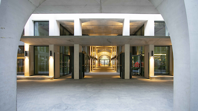 Le superbe bâtiment vitré jonché sur 4 colonnes surplombe le boulevard Morland et fait la fierté architecturale du lieu. C’est l’extension phare au projet initial. Il abrite une auberge de jeunesse de 400 lits et un bar-restaurant où il n’est pas nécessaire d’être client de l’auberge pour s’attabler ou prendre un verre… Le lieu appelle au chil et à la détente !