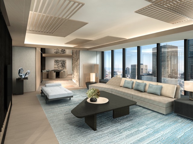 Les 154 autres chambres et suites, qui se répartissent entre le 29ème et le 35ème étage, disposeront de grandes baies vitrées pour profiter des vues imprenables sur la ville.