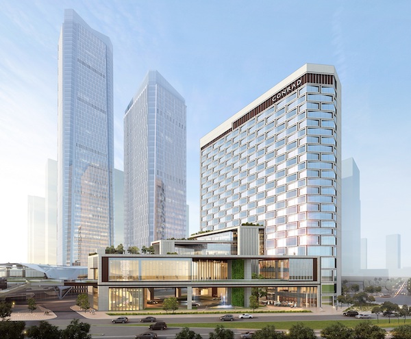 Situé au cœur du quartier des affaires et des finances, le Conrad Shenzhen sera conçu par le cabinet international Yabu Pushelberg. Son design audacieux sera axé sur le thème « L’histoire d’un rêveur » et offrira un havre de paix loin de l’agitation de la ville. Dès son ouverture, l’hôtel proposera 300 chambres et suites avec vue sur le jardin, la ville et la baie, des restaurants internationaux et plus de 1 500 m² d’espace de réunion, dont une grande salle de réception. Le Conrad Shenzhen s’engage à offrir un service adapté aux voyageurs d’affaires et de loisirs.