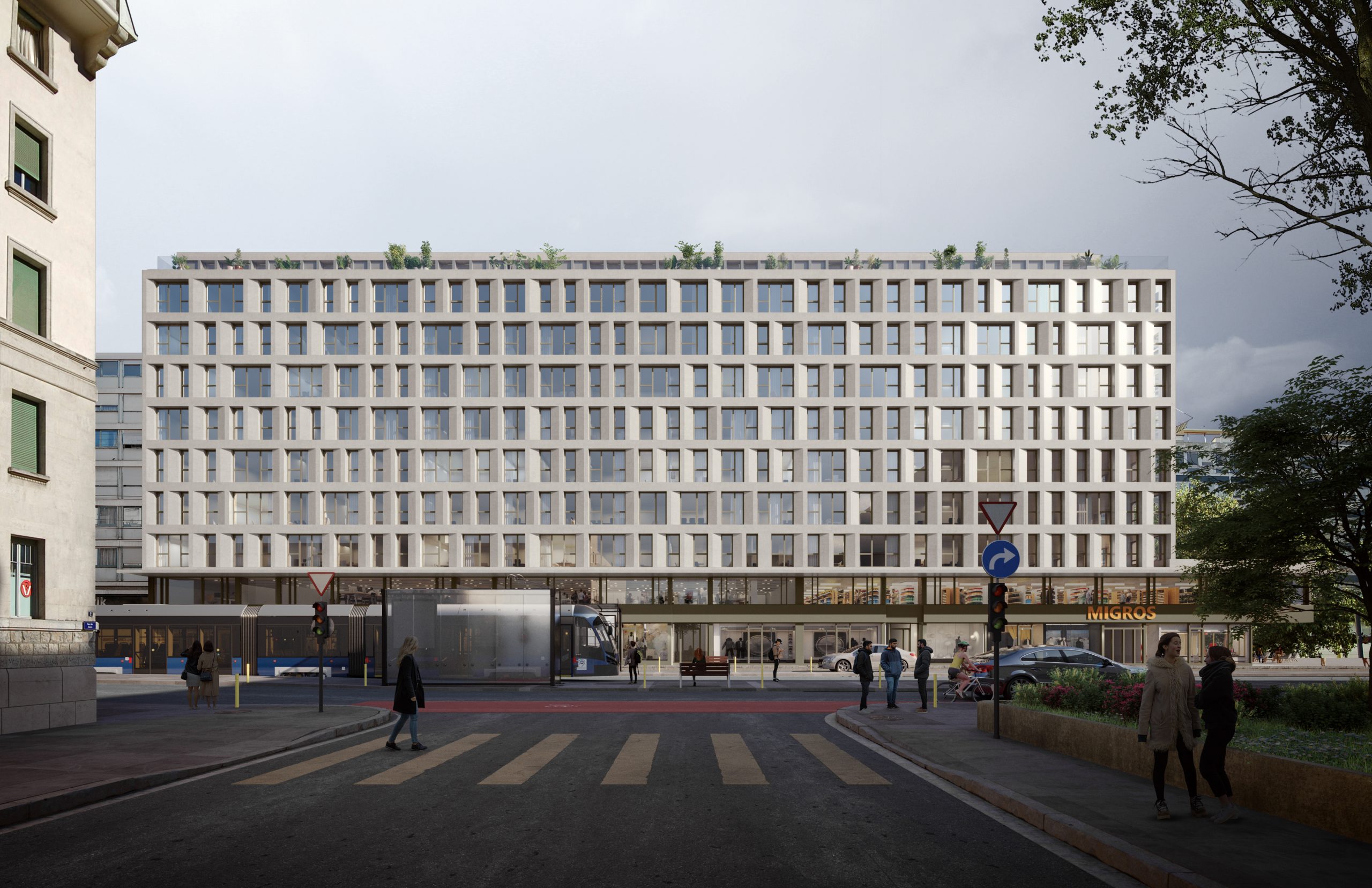 Le premier Stay KooooK de SV Hotel en Suisse romande voit le jour à un emplacement central. Avec la nouvelle adresse de la rue de la Servette à Genève, SV Hotel étoffe le portefeuille de sa propre marque à six hôtels. À Genève aussi, un concept d’utilisation mixte est mis en œuvre. Un supermarché et un restaurant s’installeront au rez-de-chaussée, tandis que les quelque 84 studios Stay KooooK occuperont les huit étages supérieurs. La demande en offres Extended Stay est particulièrement élevée dans la ville internationale de Genève.