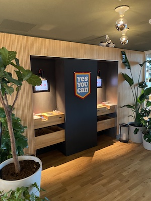 En fin de matinée, les lieux publics vibrent entre travailleurs indépendants, clients hôtels et autres invités. Les check-in se succèdent auprès de l’accueil digital (une hôtesse est disponible si le client peine à s’enregistrer sur l’écran digital).