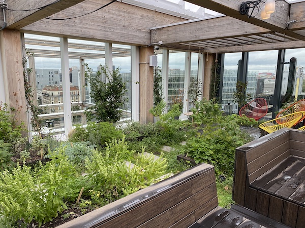 Le rooftop ZOKU propose, dans un cadre « bucolique urbain » mêlant végétation, bancs et mobilier de bois, une halte conviviale « bien dans son temps », une guinguette sur le toit.