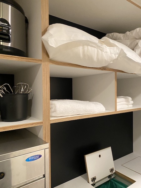 Didier Quinot : Le lit n’est pas un meuble comme un autre. Il doit être sacralisé et réservé à l’usage exclusif de l’hôte car quoi de plus désagréable que le lit devienne « banquette » ou fauteuil. De plus, l’emprise au sol du lit réduit considérablement l’espace de vie. Ainsi, les concepteurs de ZOKU ont inventé ce concept de « loft » à mi-chemin entre la « tiny house » et l’appartement pour faire de la pièce un espace de vie intégral, entre cuisine, détente, partage et travail. Pourquoi amputer l’espace de 3m2 pendant les 2/3 de la journée ?