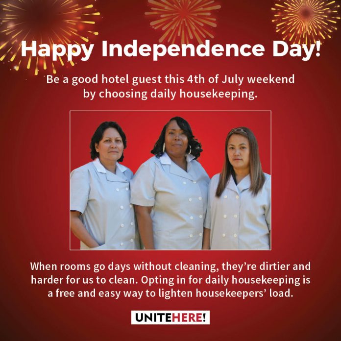 Depuis la pandémie, iIl est important de rappeler que la possibilité est donnée aux clients américains de disposer ou non d’un entretien quotidien des chambres. Le service chambre étant devenu une prestation optionnelle, on observe depuis lors, une diminution drastique du nombre de femmes de chambres ; de plus, cela a eu, comme autre effet pervers selon le syndicat Unit Here, d’intensifier la charge de travail en réduisant les « recouches » tout en augmentant considérablement les chambres à blanc (+80%) !