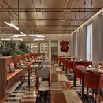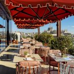 Au sommet de l’hôtel, au huitième étage, le rooftop et restaurant Etereo se pare de teintes rouge cerise, sucre brun et sable, et offre une vue spectaculaire sur les toits de Milan. La vue panoramique à 360 degrés s’étend du Duomo à la Galleria, du Château à Porta Nuova, tandis que la terrasse surplombe la ville, avec une piscine extérieure, des transats, des canapés et des parasols.