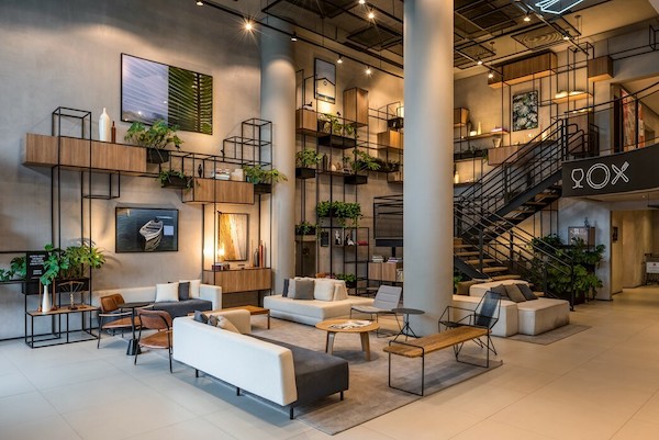 Le concept de design Plaza , par FGMF au Brésil, est illustré à l’ ibis Sao Paulo Barra Funda. Les bois chauds d’Amérique du Sud se mêlent aux métaux bruts, créant une atmosphère résidentielle moderne et branchée, avec une touche résolument industrielle. Dans le hall en plein air, un bar central domine l’espace, invitant les clients à se rassembler et à se mêler au centre social, libéré des frontières visuelles. Les banquettes et les aires de repos avec des oreillers confortables coulent de l’intérieur vers l’extérieur. Des enseignes au néon guident les invités dans tout l’espace, ajoutant de la couleur et de l’énergie, tandis que des plantes abondantes et des panneaux de plafond en fer forgé ajoutent un intérêt visuel et de la texture. Les chambres du concept Plaza poursuivent le thème d’un style de vie décontracté et chaleureux, avec des éléments en bois et en métal avant-gardistes, comme un mur d’étagères ouvertes où les clients stockent des vêtements et des objets personnels, mélangés à une exposition d’objets d’art audacieux et authentiques.