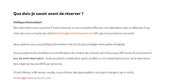 Et la Justice, saisie par un des « convives », n’a fait que conforter la décision du restaurateur qui a rappelé que le restaurateur informait systématiquement sa clientèle quant aux conditions d’annulation 5VOIR CI_APR7S°