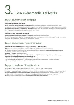 - Des supports de communication « Paris Je t’aime » valorisant l’engagement des signataires auprès du public et témoignant de leur adhésion au Manifeste sont édités. Les professionnels sont mis en avant dans les contenus digitaux « Paris je t’aime » selon leur secteur d’activité.