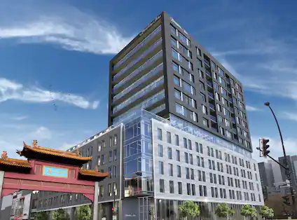 Situé aux portes du Quartier chinois sur un ancien stationnement à l’angle de l’avenue Viger et du boulevard Saint-Laurent, le Hampton et Homewood Suites par Hilton offre un emplacement très central, avec le Palais des congrès et le palais de justice tout près, l’accès facile au Vieux-Montréal, à la place des Festivals et à plusieurs artères commerciales de la métropole. « Le centre-ville commence à s’étendre avec les nouveaux projets dans l’est de la ville ; l’emplacement est parfait, très accessible à partir des autoroutes, ce qui n’est pas à négliger », remarque le directeur général. Ainsi, l’hôtel espère attirer une clientèle d’affaires, évidemment, mais aussi des groupes sportifs, par exemple.