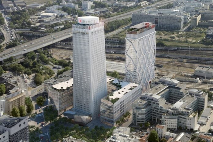 Cette restructuration XXL constitue le pivot d’un vaste projet de business resort de 77 500 m2 dans un quartier de la Plaine-Saint-Denis en pleine mutation. Imaginé par l’architecte Sretchko Markovic (163 Ateliers) et financé par Pleyel Investissement (filiale de la compagnie d’assurances Afi Esca-Groupe Burrus), ce complexe se déclinera en un centre de conférences (5 618 m2), 2 500 m2 de commerces et restaurants et 34 500 m2 de bureaux répartis dans deux nouveaux bâtiments : un immeuble de six étages entourant en « U » le pied de l’hôtel et une tour de 21 étages, respectivement baptisés Music-Hall et Maestro, clin d’œil au passé du site qui abrita longtemps la manufacture des pianos Pleyel. (…) Lire la suite sur Le Moniteur