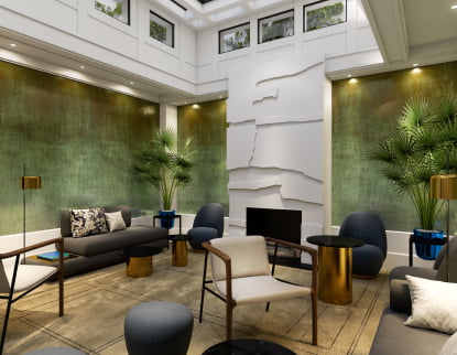 Passant la magistrale porte cochère du numéro 5 le visiteur déambulera à pas feutrés dans une enfilade courant le long des trois façades où se suivent lobby, bibliothèque, bar et restaurant. Ici le luxe discret du confort poussé à l’extrême l’emporte sur une ostentation tape-à-l’œil qui n’aurait pas sa place à Saint-Germain. Découverte heureuse durant le chantier, le bâtiment possède par ailleurs un poumon vert sous une verrière oubliée, devenu un salon ouvert sur le ciel et la végétation. (…) Lire la suite sur Elle Décoration
